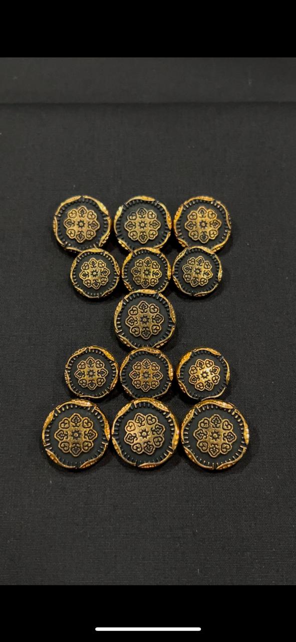Black Antique Matte Sherwani/Jodhpuri Metal Button is a timeless and regal embellishment that exudes sophistication. Crafted from durable metal with a matte black finish, these buttons feature an antique look, giving them a vintage charm and a touch of old-world elegance. Often used on Jodhpuri suits or traditional sherwanis, their understated yet luxurious design complements formal and festive attire. The matte black finish provides a subtle contrast to the fabric, making these buttons perfect for those seeking a refined, classic aesthetic with a contemporary twist.