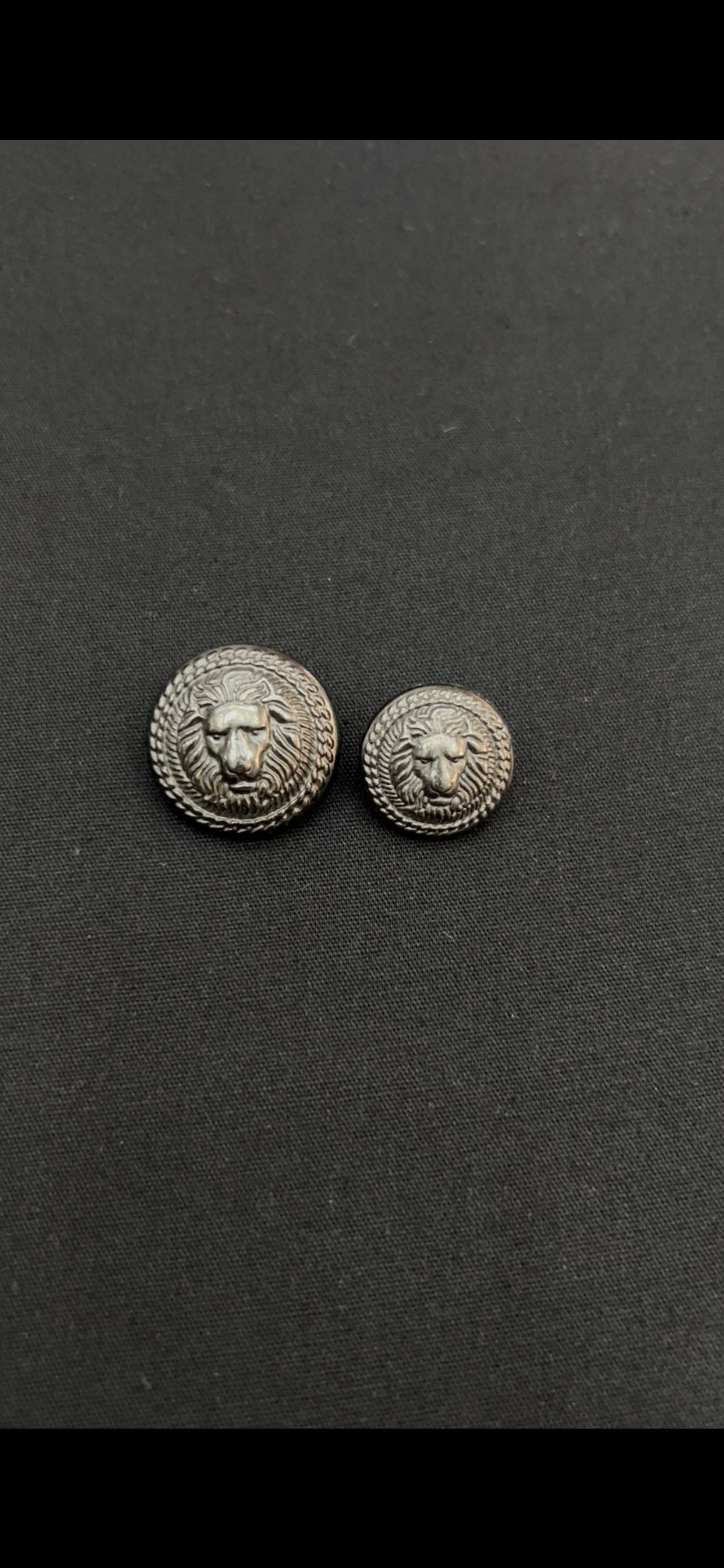 Crafted in a bold gunmetal finish, this vintage lion face sherwani button exudes royal elegance and modern edge. Its intricate detailing and deep metallic tone bring a powerful yet aesthetic touch to any traditional or Indo-western ensemble.