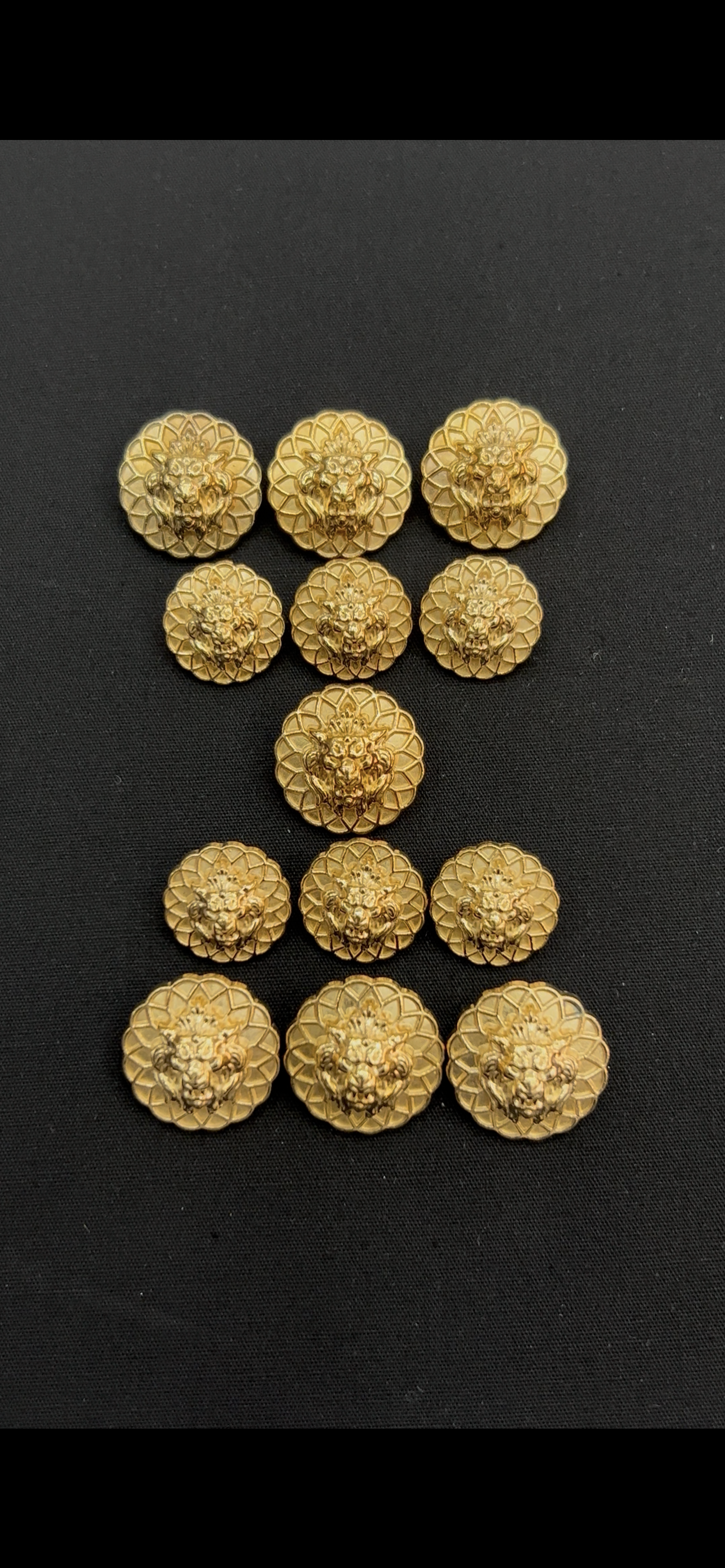 Unleash a statement of royalty and strength with these vintage sherwani buttons featuring a bold jaguar face in a luxurious gold finish. With intricate detailing and a timeless aesthetic, they add a regal edge to any traditional outfit—perfect for grand occasions and groom wear.