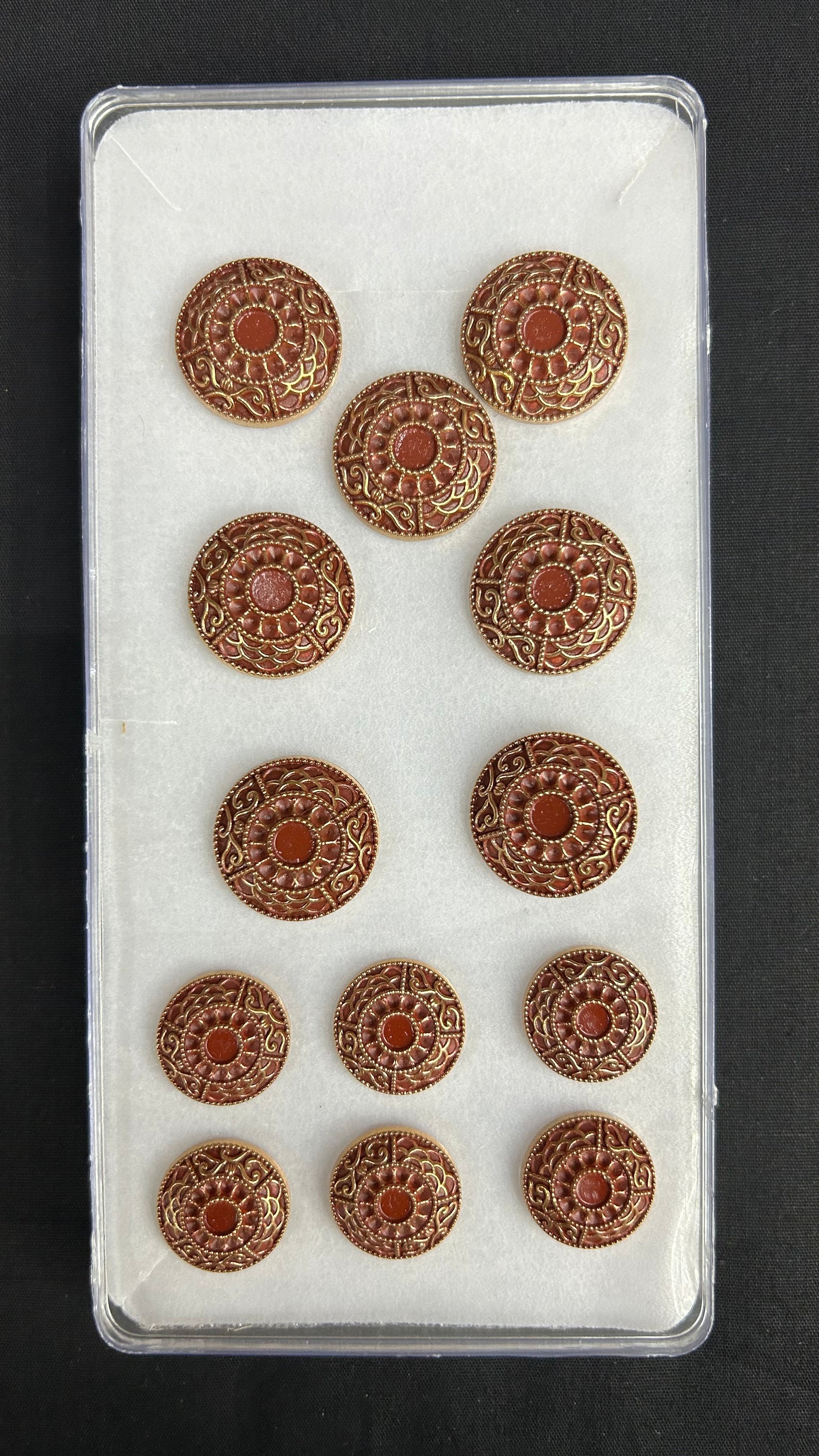 Matte red is a bold, understated shade of red with a soft, non-reflective finish. This color exudes a modern, sophisticated vibe, making it a popular choice for contemporary designs in traditional wear. When used for Sherwani buttons, matte red provides a striking contrast without the glossy intensity of brighter reds, adding a unique and subtle touch to the outfit. The muted finish of matte red pairs beautifully with gold, silver, or even black accents, creating an elegant yet bold statement. Perfect for weddings or festive events, matte red buttons offer a modern twist while maintaining a sense of classic refinement.